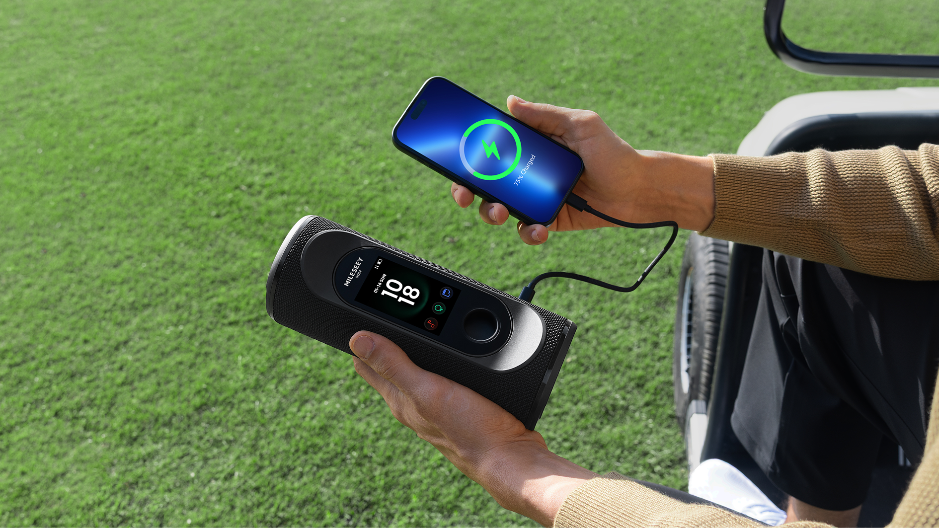 40Wの力強く共鳴するサウンドで、スイングのたびにお気に入りのプレイリストが躍動します。 グリーンの前・中央・奥までのクリアな音声案内により、ショット計画も簡単に。 ティーショットからパットの準備まで、このスピーカーがプレーに没入感を与え、ラウンドをさらに充実させます。