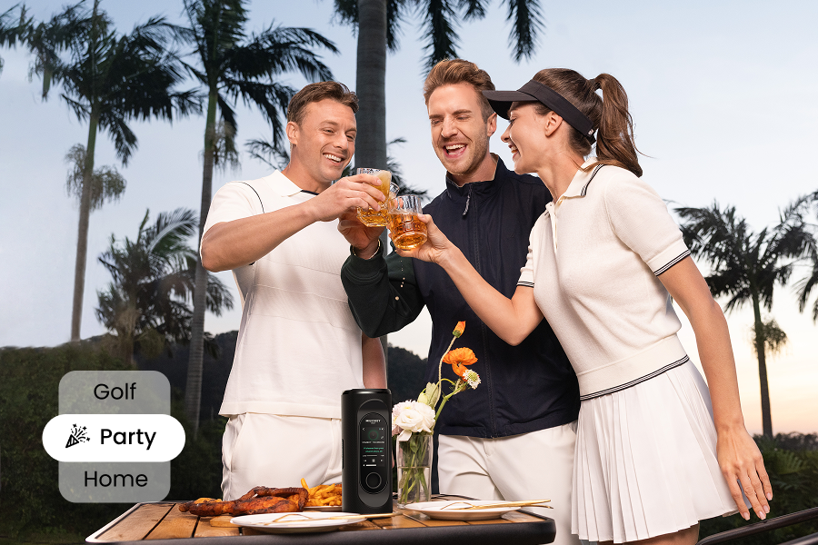 ゴルフ、ホーム、パーティーの3モードを切り替えて、屋外では迫力あるサウンド、室内ではクリアでバランスの取れた音質、パーティーではダイナミックな低音を楽しめます。