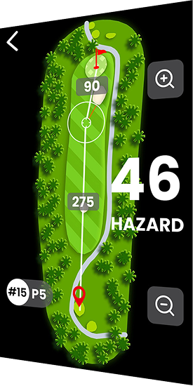 ハザード、グリーン、ピンポジション、フェアウェイの詳細レイアウトを瞬時に視覚化。